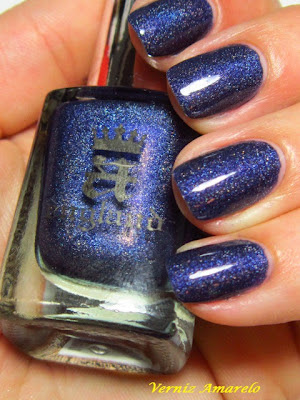 Apesar de o verniz de base ser lindo, pois é um azul profundo holográfico, não resisti a colocar umas cornucópias :)